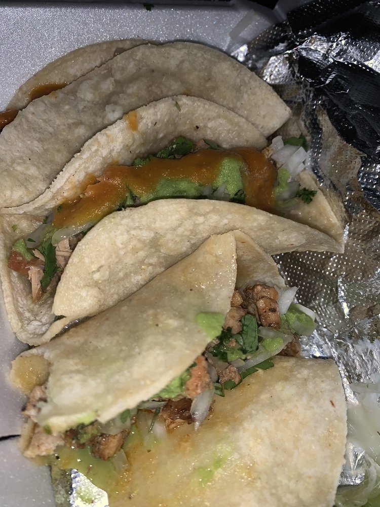 MARINATED GRILL CHICKEN, CHOICE OF FLOUR OR CORN TORTILLA, CEBOLLA (CHOPPED ONION), CILANTRO AND CHOICE OF SALSA : (HOT VERDE,GREEN) (MILD VERDE, GREEN) (HOT ROJA, RED)(RED MILD)