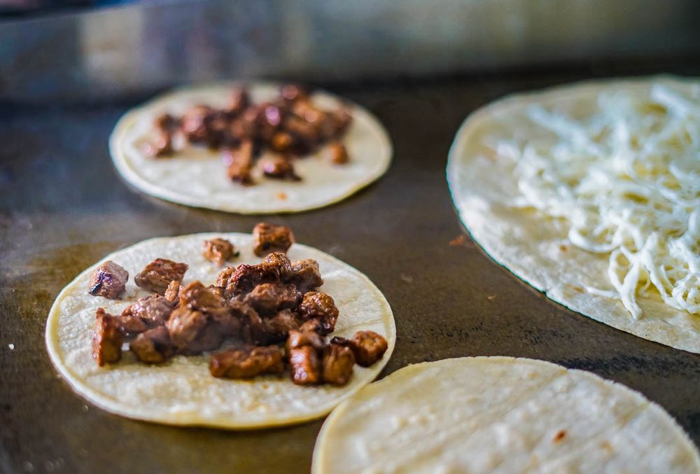 MARINATED STEAK, CHOICE OF FLOUR OR CORN TORTILLA, CEBOLLA (CHOPPED ONION), CILANTRO AND CHOICE OF SALSA : (HOT VERDE,GREEN) (MILD VERDE, GREEN) (HOT ROJA, RED)(RED MILD)